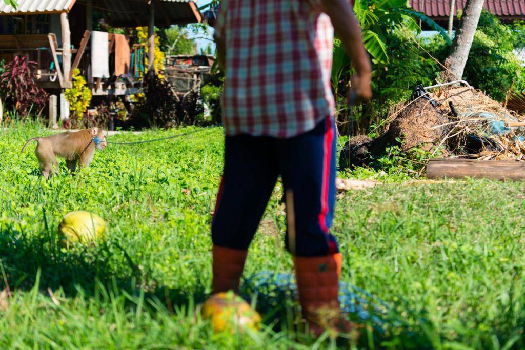 Банг Сан собирает кокосовые орехи не в одиночку. Если вы живете неподалеку, мужчина придет к вам в гости пешком. Для более дальних поездок Сан пользуется мотоциклом. Но и в том и в другом случае Банг берет с собой своего помощника, свой самый важный инструмент и, возможно, самую ценную собственность – сварливую макаку по имени Ай Тонг.