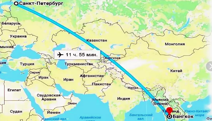 Приведем примеры некоторых маршрутов по длительности из Санкт-Петербурга до Бангкока: