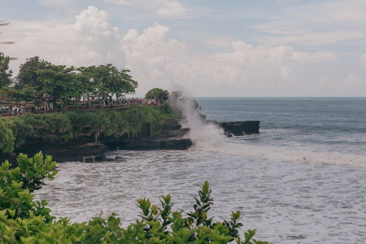 Храм Танах лот известен тем, что подойти к нему близко можно только во время отлива. В другое время там бушуют волны и находится в воде или на пляже просто опасно и невозможно.