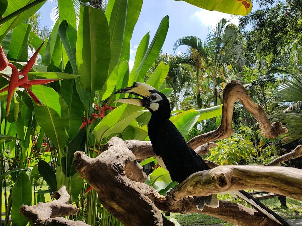 Вальяжно красуются перед туристами павлины, аисты, хохлатые журавли, фламинго, фазаны, филины и цапли. В пруду резвятся пеликаны, утки и лебеди. На ветках раскидистых деревьев свободно восседают попугаи всех цветов радуги. Птицы с удовольствием позируют на фотокамеру и не боятся садиться на руки, что приводит туристов в восторг.
