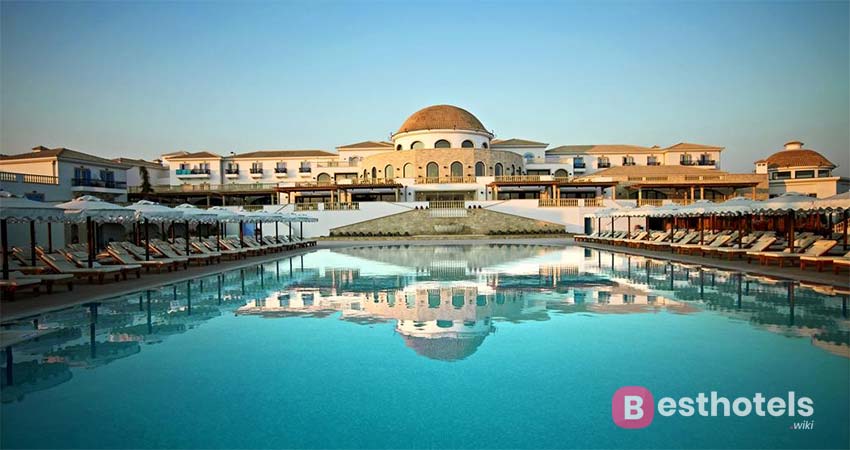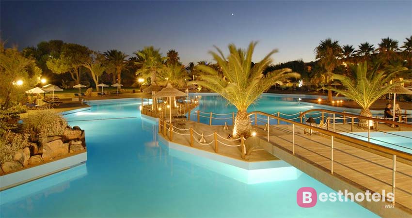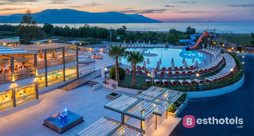 Выбор номера подразумевает виды красотами сада, который находиться на территории и бурными красками прилегающей местности. Кормят тут в наилучших обыкновениях доброжелательного Крита. В комплексе множество мест, где вы сможете утолить свою жажду и голод, от пышного ресторана, до оригинально оформленных баров, в которых в вечернее время протекают живые выступления лучших артистов различных жанров. В местном спа-центре предлагаются косметические услуги по новейшим японским технологиям. Пока ваши дети развлекаются на игровых площадках и плескаются в бассейне вы можете посетить тренажерный зал, где квалифицированные инструкторы ежедневно проводят групповые занятия. На небольшом расстоянии есть дивный песочный пляж, находящихся в объятьях песчаных белоснежных дюн. Вода настолько чистая и прозрачная, что создаётся ощущение, что плывешь по воздуху.
