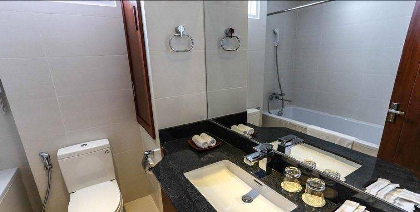 Наиболее комфортны сьюты Executive и Президентский, в них две комнаты, а из окон открывается вид на море. В сьютах и делюксах большие ванны, в остальных номерах душевые кабинки. Каждый жилец обеспечивается халатом и тапками, полным набором ванных принадлежностей, постоянно обновляемых.