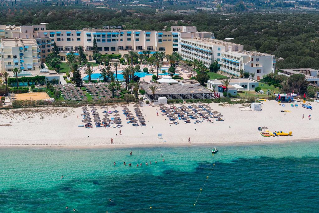 Отличный курортный отель в Хаммамет. Важные преимущества – импортный алкоголь (редкость для Туниса) и идеальный пляж, за которым следят.
