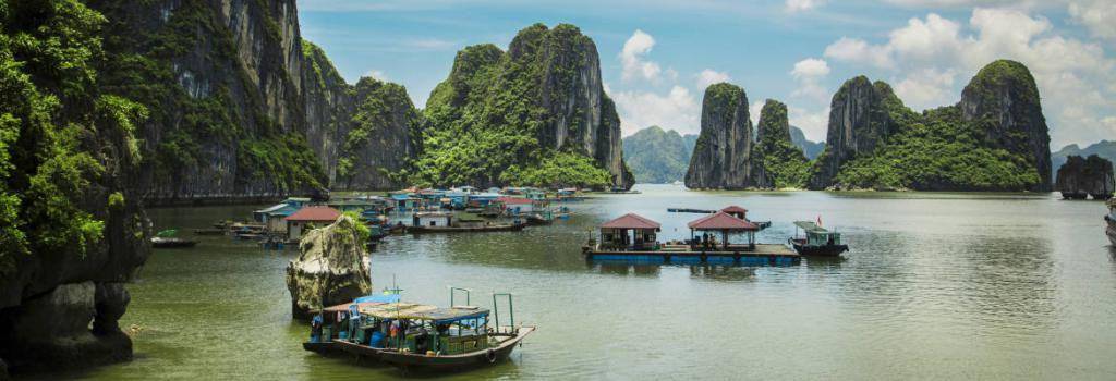 В национальном парке Бухты Халонг — одни из самых красивых пейзажей на планете. Несколько тысяч маленьких известняковых островков и утесов, поднимающихся из морских вод и имеющих причудливую форму, заставляют поверить в легенду этого места. Она гласит, что острова Халонга были созданы гигантским драконом, который жил в горах. Причудливые утесы и скалы по форме похожи на черепаху, верблюда, кошку, голову собаки или дракона.