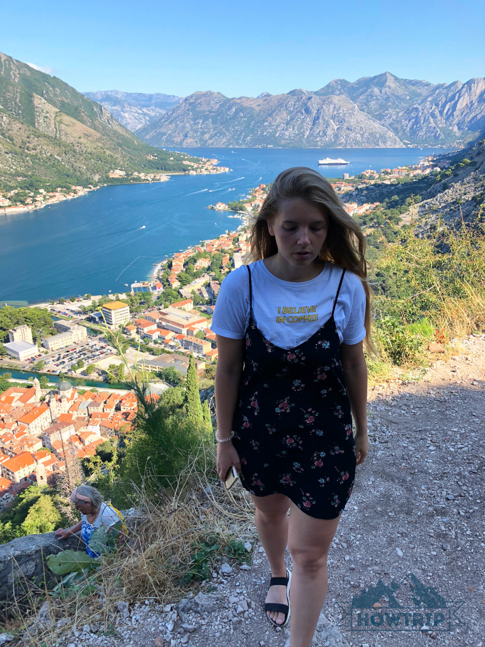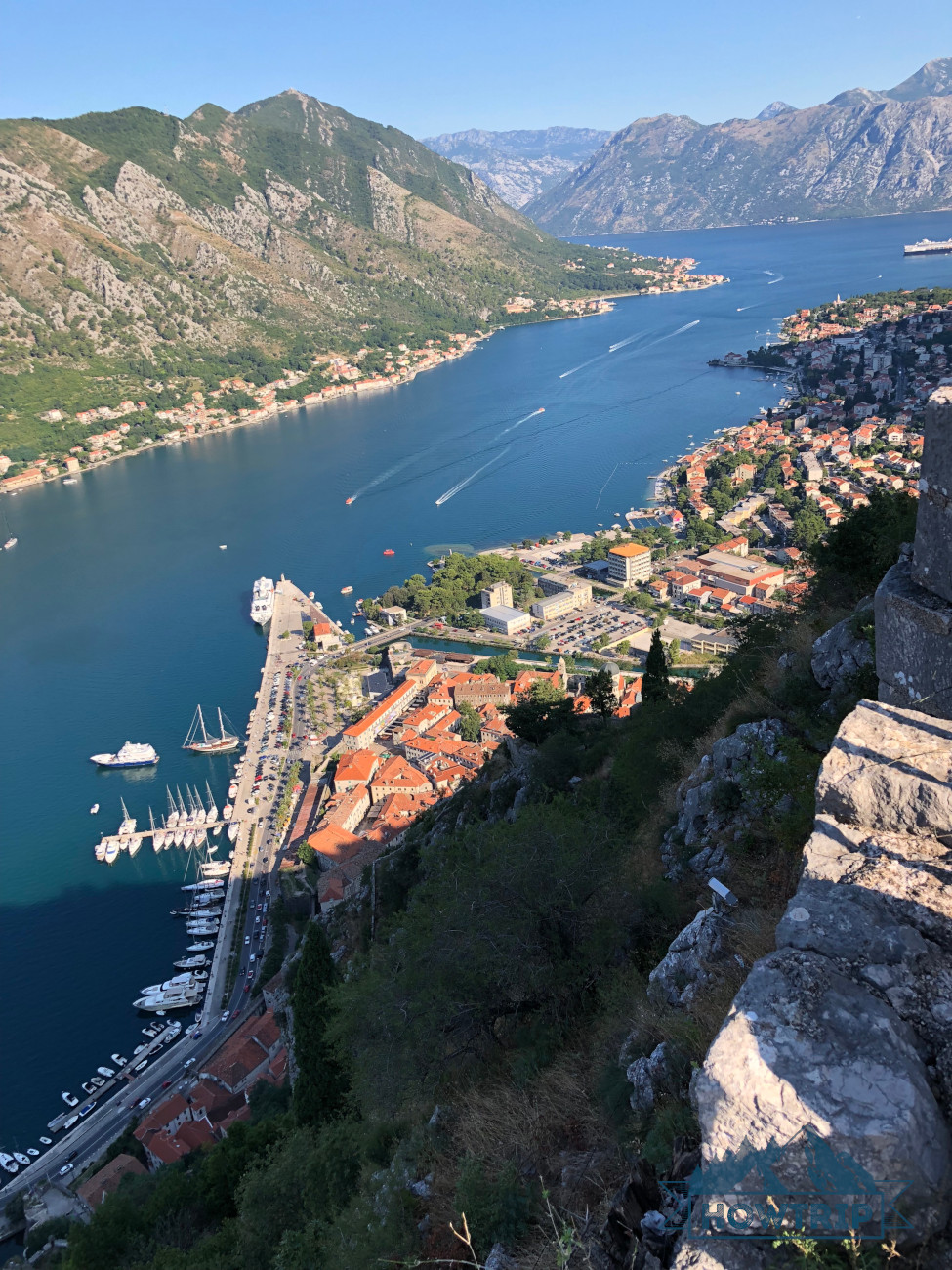 Вид со смотровой на крепости Котора — забираться не так уж и легко:)