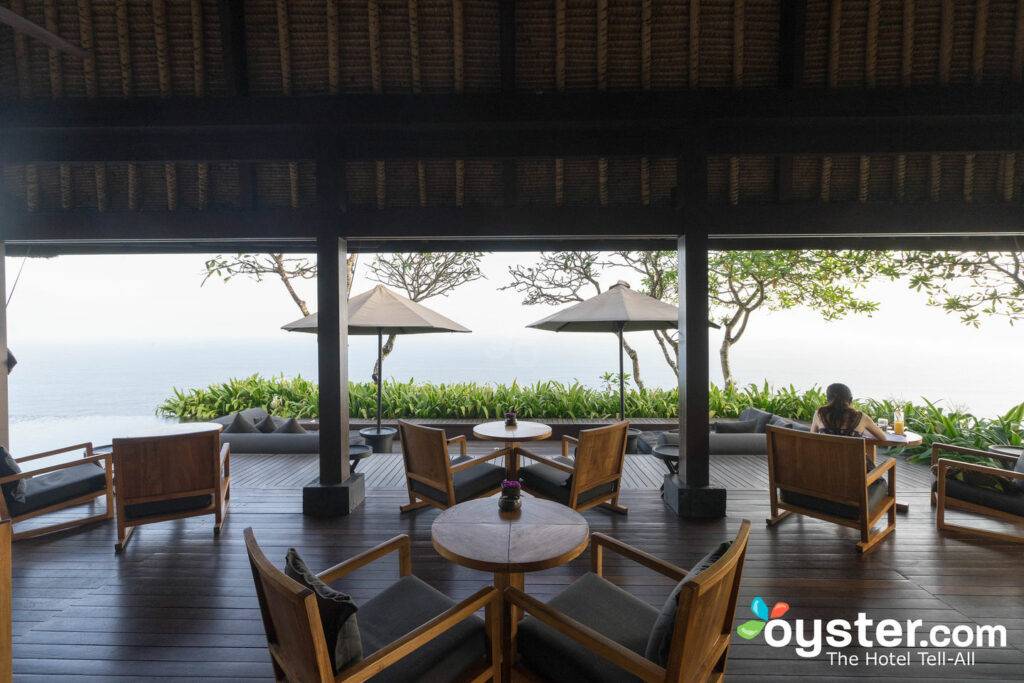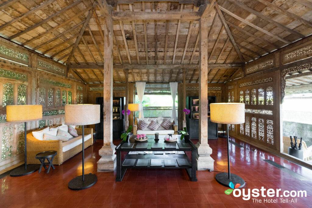 Opened in 2006, the five-pearl Bulgari Resort Bali is operated in a joint venture between Italian luxury goods brand Bulgari and Marriott International’s Luxury Group (which also manages The Ritz-Carlton properties). This cliffside property consists of 59 villas and five private mansions with up to five bedrooms, making it feel more like a cliffside community of well-heeled travelers than a typical resort. Guests enter through a rustic pavilion flanked with bougainvillea and shrubbery that offers a beautiful first glimpse of the villa rooftops and the ocean in the distance. The space has a handful of white couches and stone columns supporting a high wood-and-bamboo pitched ceiling. While designers likely were going for a minimalist-chic look, the result may feel a bit cold for some guests.