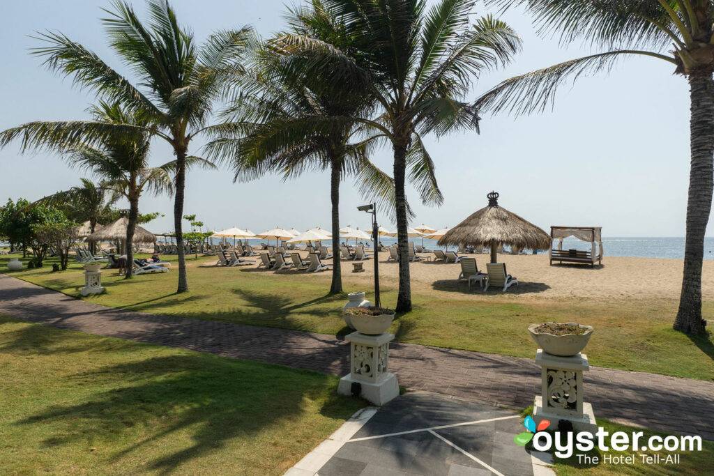 The hotel is located on a busy road lined with markets, restaurants, a few spa parlors, and a number of other beachfront resorts. It is fairly quiet here, especially if compared to other areas in Bali, but those looking to go shopping can find several malls within a 10-minute drive of the property, including the famous Bali Collection. Many more dining, shopping and nightlife options can be found in lively Seminyak, located a half-hour away. The famous Waterblow can be reached in about 15 minutes, and it’s a 25-minute drive to the town of Kuta. Uluwatu Temple is about a 45-minute drive away. The property is 25 minutes from Ngurah Rai International Airport.