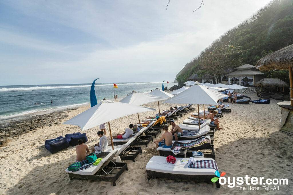The hotel is located in a quiet area on Bali’s southern coast known for being home to stunning luxury resorts. It is right at the top of a striking cliff that ends in a lovely sandy beach, and there isn’t much within walking distance except for a couple of beach clubs and other hotels. The stunning Uluwatu Temple is a 20-minute drive away, and there is a golf course about the same distance from the property. There are a few restaurants and shops in Jimbaran and Nusa Dua, each about 20 minutes away, and Kuta’s nightlife can be reached in about 35 minutes. The airport is a 40-minute drive away.