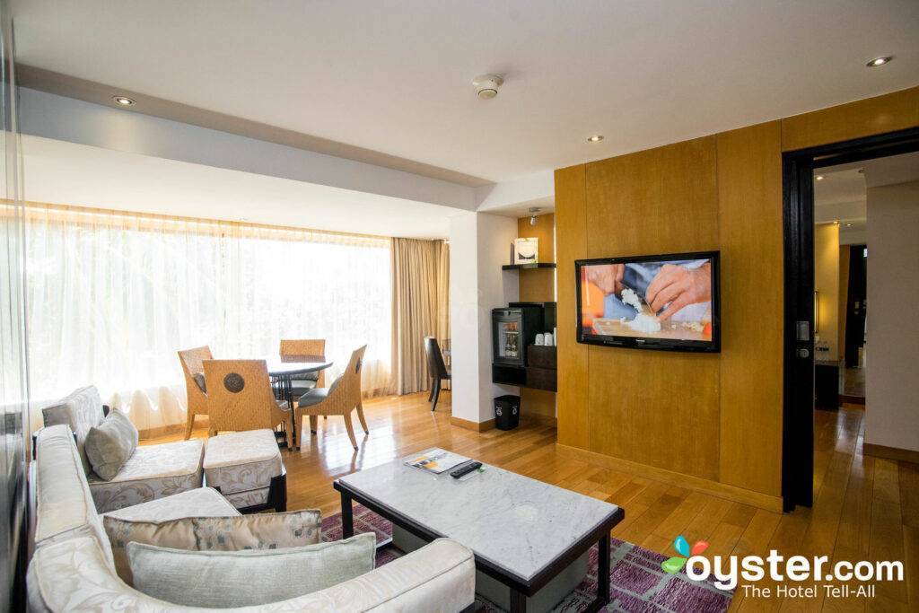 Rooms and suites at the Westin have an upscale contemporary look with traditional Balinese elements and sleek dark and light wood-veneer accents. The color palette is a soothing mix of brown, beige, and white, with all-white bedding. Nice additions include Balinese tilework embedded within sharp headboards and polished hardwood floors. The large windows let in ample natural light, and rooms are clean and quiet.