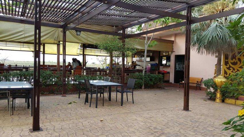 Есть уютный ресторан, рядом с которым небольшой водоем с лилиями.