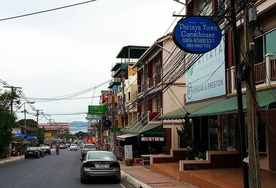 Как и везде в Паттайе, здесь в каждом доме сдаются комнаты. Возьмем любую из моих фотографий этого района. В первом же доме сдаются комнаты, во втором стриптиз бар, в третьем сдаются. в четвертом сдаются и т.д. Цена на жилье в таких гестах от 400 до 800 бат за ночь. На длительный срок около 10 000 (330$) в месяц + коммуналка.
