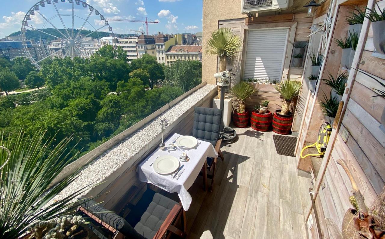 И звезда этой статьи — невероятная квартира, которую я отложил себе в список на следующую поездку в Будапешт. Подобные варианты попадают в журнальные подборки в духе «10 лучших квартир в …». Это то место, куда приятно возвращаться, а то и провести полдня за чтением книги на террасе — и ни сколько не жалеть, что что-то упустил в городе. Потому что Будапешт — он вот, за окном, протяни руку — и дотянешься до колеса обозрения:) А то, насколько квартира красивая и наполненная тысячей стильных мелочей, лучше смотреть на фотографиях.