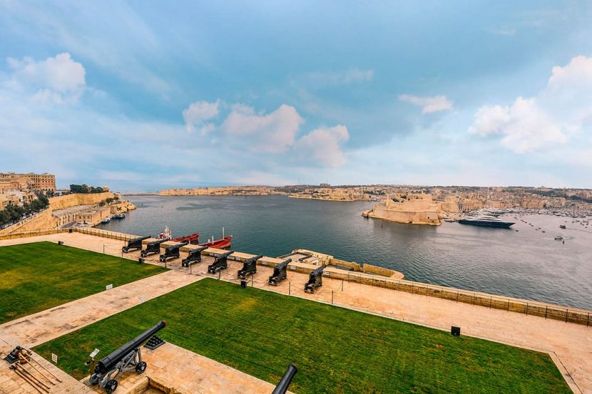 Тенистые Верхние казарменные сады — долгожданная передышка от мальтийской жары. Отсюда открывается невероятный вид на Три города. Мы сделали пару снимков, а затем расслабились на скамейке, наслаждаясь видом. Сады раскинулись над Салютующей батареей, церемониальной частью укреплений Валлетты.