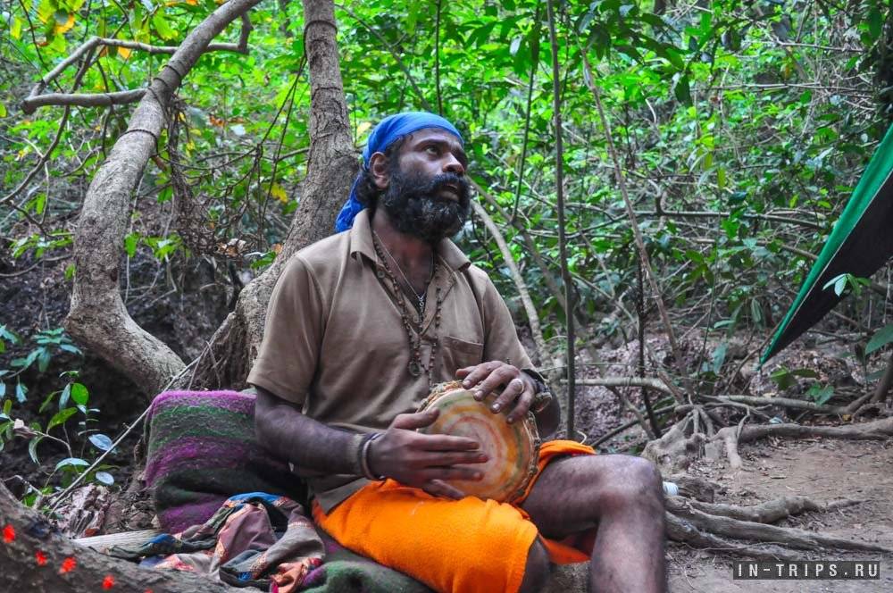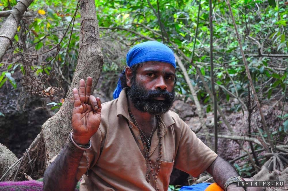 А для благословения есть специальный жест. История этого бабы тоже интересна, он рассказал что в обычной жизни работает учителем в школе и время от времени прекращает свою учебную деятельность, приходит в джунгли и живет как аскет.