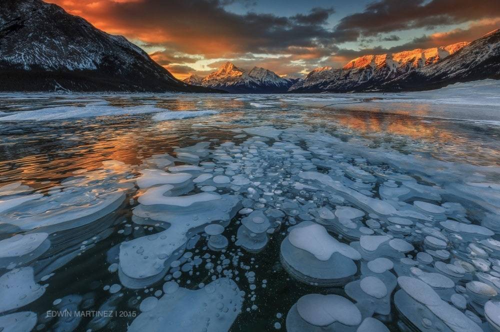 Попавшие в ледяную ловушку озера Абрахам в Канаде пузыри метана.