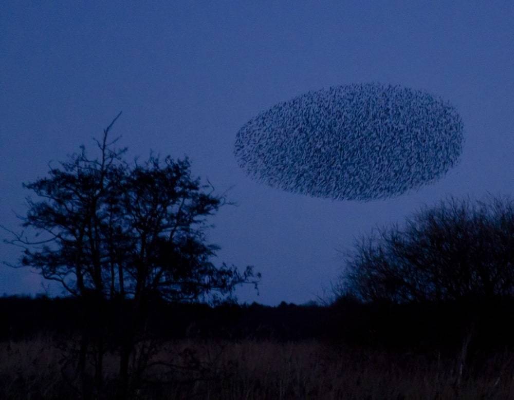 До 50 тысяч скворцов сбиваются в небе в огромные щебечущие стаи. Это явление также получило название «ропот».