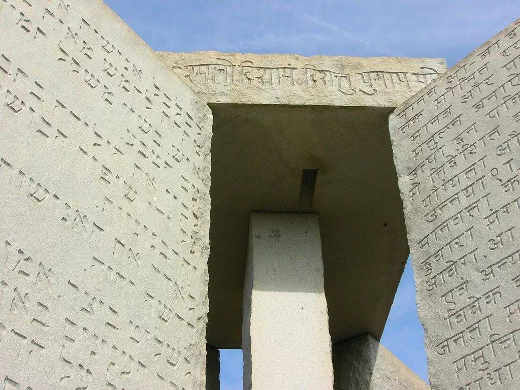 Монумент весил 119 тонн, состоял из 6 гранитных плит, на которых была сделана одна и та же надпись на 8 современных языках: английском, испанском, суахили, хинди, иврите, арабском, китайском и русском. Вот она: