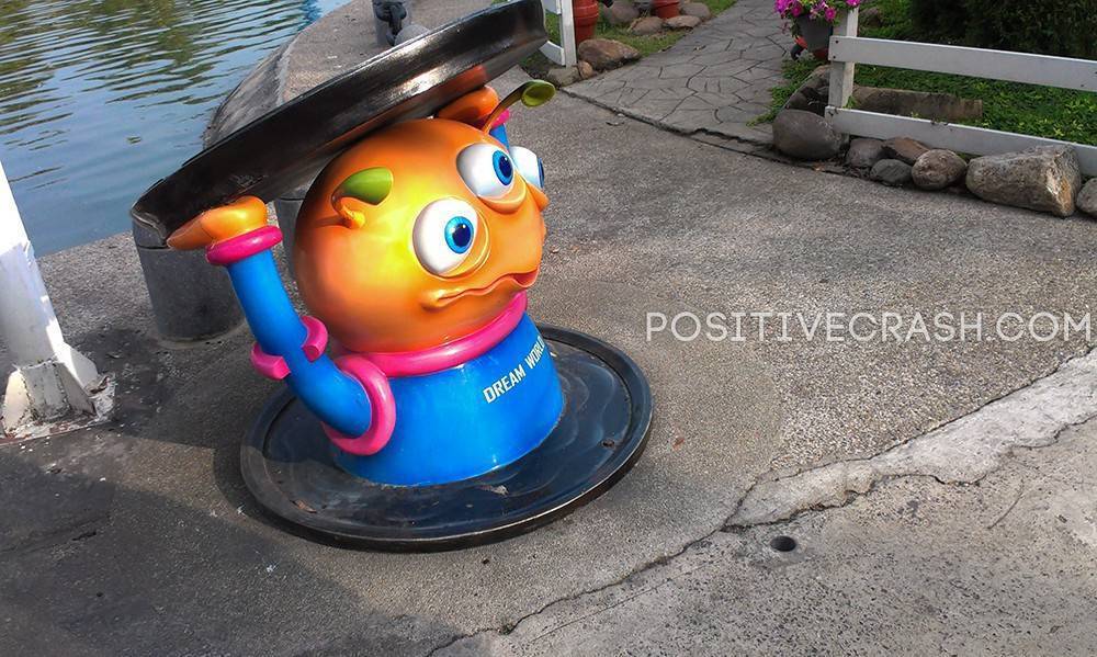 Я глубоко вдохнула 3 раза, успокоилась и настроилась, что сейчас-то через час мы точно доедем! Полуденное солнце сменялось полуденным дождем, а мы все ехали, ехали и приехали. Но не в Dream World. У водителя случились какие-то более важные дела, чем наша поездка на аттракционы, и, высадив всех пассажиров и кондуктора где-то за городом, он поехал дальше. Постояли в дружной тайском компании (как вы понимаете, русских там и в помине не было), дождались нового автобуса, в который нас погрузила кондуктор, и через еще минут 20 кондуктор номер два нам торжественно сообщил, что близится наша остановка. И вот, теоретически, мы добрались. Ан нет! Дальше нужно перейти дорогу, пройти по мостику и дойти до начала парка.