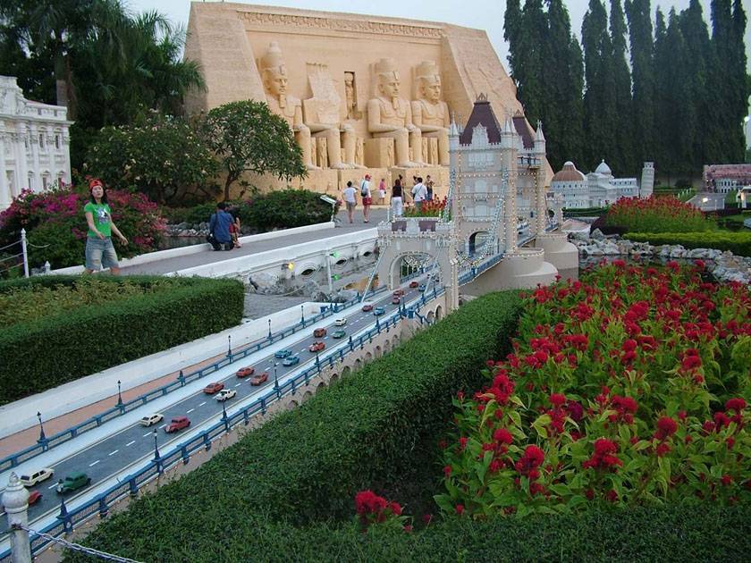 Все архитектурные памятники в парке «Мини Сиам» в Паттайе созданы в масштабе 1: 25, причем это не одинокие здания, вырванные из естественной среды, а целые комплексы, в точности повторяющие их окружение. По улицам «городов» гуляют дети и прохожие, гвардейцы в национальных костюмах стоят на положенных им постах. Все машины на улицах городов можно различить по маркам. Под макетом моста через Темзу течет игрушечная река, а по ней ходят «настоящие» пароходы. Деревья, фонтаны, всё, буквально всё, воссоздано именно так, как есть в жизни. Вероятно, что единственно чего нет на этих макетах – вездесущих воробьев.
