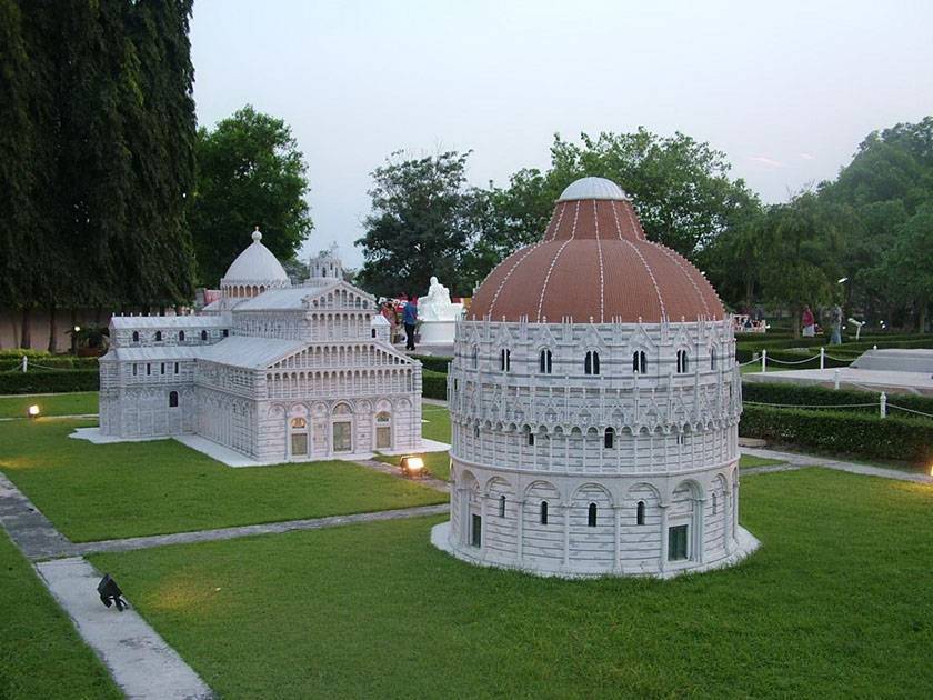 То, что действительно поражает – это детализация представленных экспонатов. Сооружения возведены не «тяп-ляп» из папье-маше, сразу заметно, что к строительству миниатюр отнеслись очень щепетильно. Мелкие резки на окнах, флаги в руках у обитателей крохотных домов, машины на мосте, мелкие колонны на пизанской башне и т.д. Все нюансы и, казалось бы, мелочи – скопированы и досконально перенесены на представленные миниатюры. Стоит отметить, что за парком и конструкциями ухаживают. Несмотря на повышенную влажность, тропические, проливные дожди и «износ» экспонатов туристами – все они выглядят довольно симпатично и чисто.