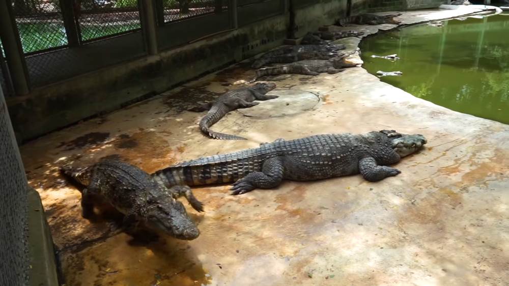 Экскурсия на крокодиловую ферму в Паттайе включает осмотр территории, кормление рептилий, просмотр шоу, посещение ресторана и сувенирных магазинов.