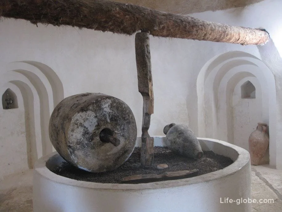 Узнать, как получали оливковое масло, способом простого отжима и давления, приводящегося в движения силами людей и верблюжьей тяги