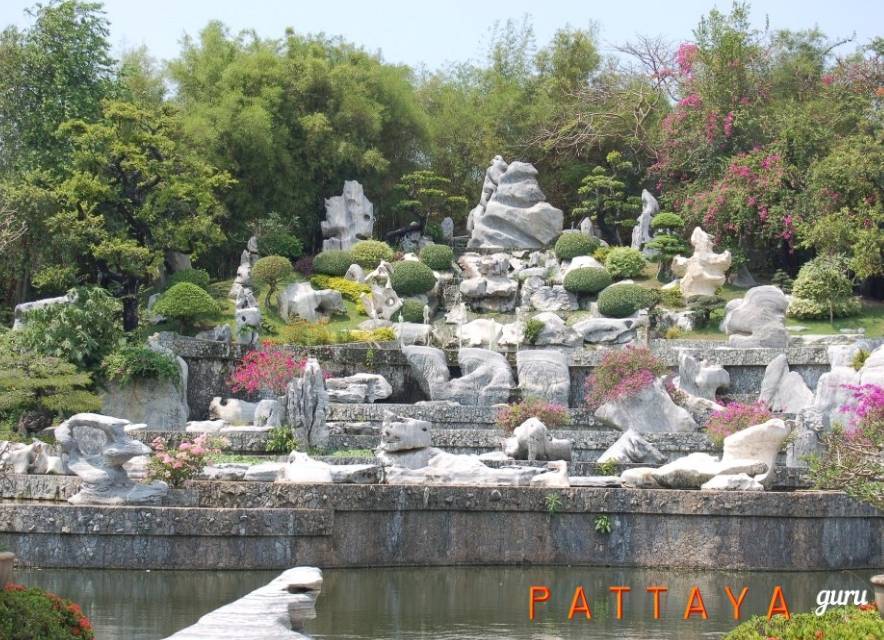 Особого внимания заслуживают окаменевшие деревья, судя по оценкам углеродного анализа видевшие динозавров. Центр сада камней украшает искусственный водопад, один из самых внушительных в Паттайе.