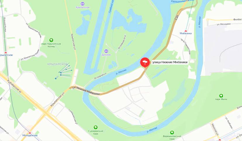 Район Хорошёво-Мнёвники, в котором расположен комплекс, многим покупателям хорошо знаком. Совсем рядом находится такие достопримечательности, как Серебряный бор, Живописный мост и Гребной канал. Однако на данный момент здесь нет никакой инфраструктуры, локация представляет самый настоящий обособленный остров. По нему проходит трасса “Нижние Мнёвники”, до ТТК отсюда 7 км пути. На данный момент территория являет собой практически первозданные поля.