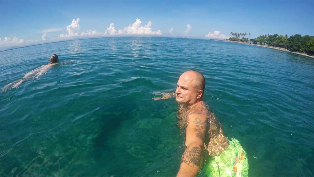 Но это не наш метод. На завтрак у нас банановый блин, папайя и ананас. А когда есть хороший песочек и классное море, что еще надо? В обед плавал с маской и выловил краба-отшельника. Позже чуть не напоролся на морского ежа. А вообще, тут можно вообще ничего не делать. Атмосфера к этому очень располагает. Люди тут расслабленные. Упала пальма, перегородила дорогу – никто не кричит. Села лодка на мель, груз надо таскать по воде. Таскают и смеются, типа “вот мы дятлы, посадили лодку на мель напротив родного дома”…