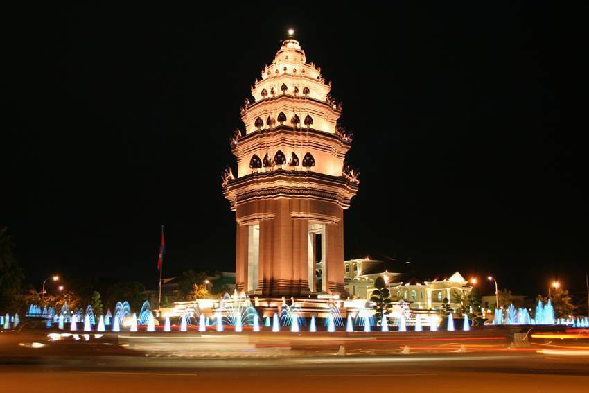 The monument and square are located at the intersection of Phnom Penh’s two largest roads, Sihanouk and Norodom. The monument is a traditional stupa, mimicking the architecture of Angkor Wat temple and other famous historical buildings of Cambodia.