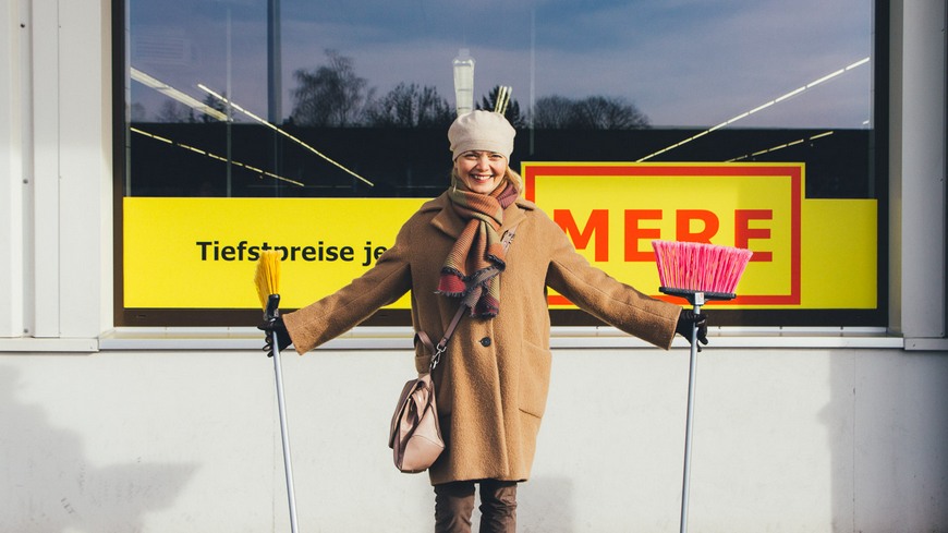 На фото – я со швабрами. Они там стоят меньше 2 евро. Это самый ходовой товар. В Германии такого давно никто не видел.