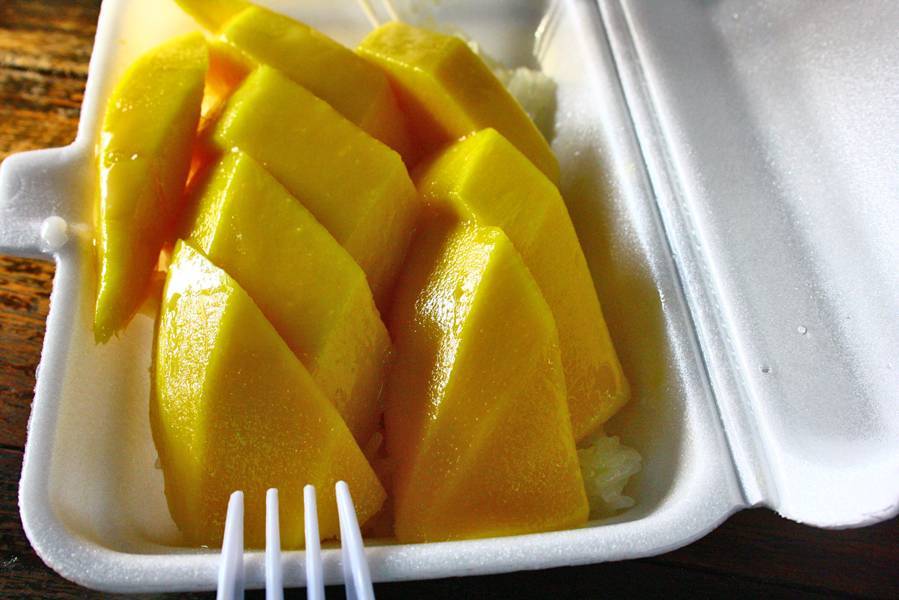 Если вы – я, то дальше можете смело распрощаться еще с 50 батами, т.к. устоять перед рисом с манго (као ньяо ма муанг) я до сих пор не могу Он там продается повсюду, как и мороженко, и холодный чай, и кукуруза – в общем, как на всех рынках.