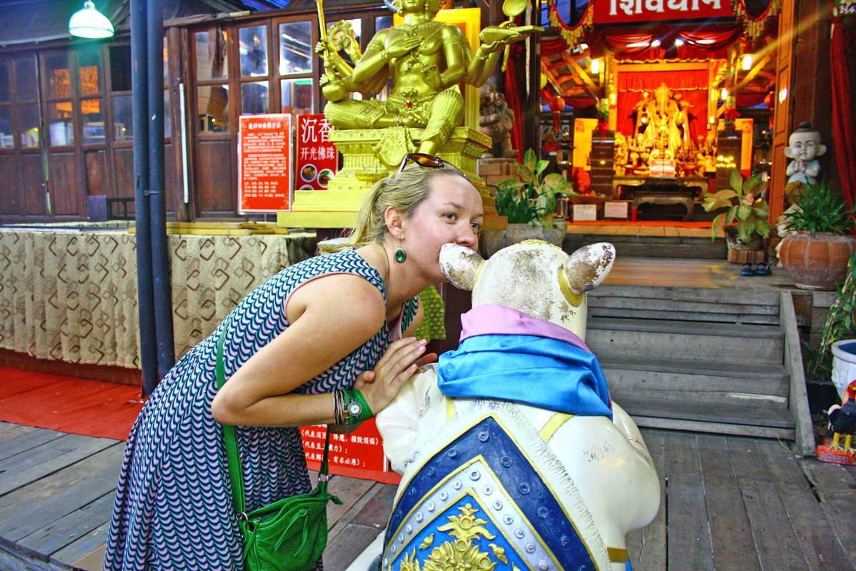 На входе на плавучий рынок в Паттайе (для меня – на выходе) есть индуистский храм Ганеши. У входа в него стоит зверь (крыс, если быть точной), которому на ухо знающие люди что-то говорят. Разумеется, желания) Нужно закрыть крысе одно ухо рукой, а в другое шептать желания, которые, конечно, сбудутся! Я тоже пошептала, жду теперь.