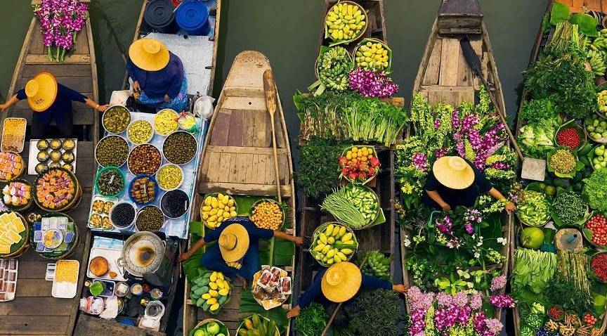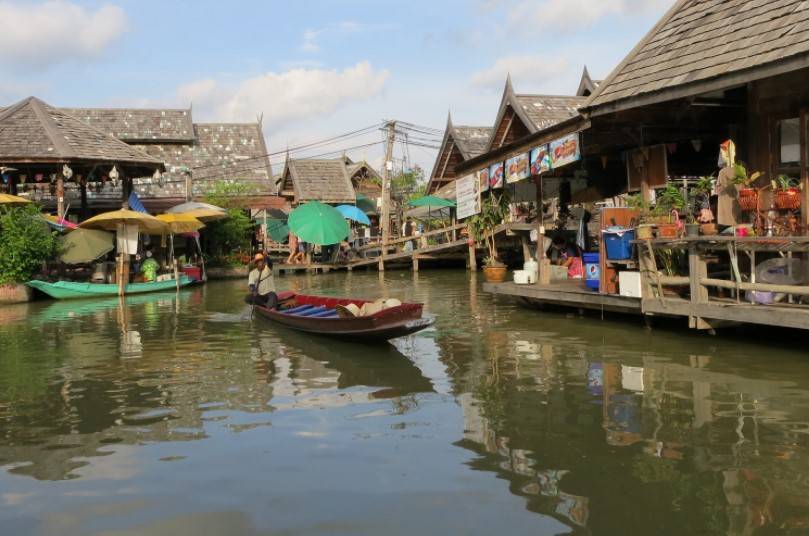 Территориальным положением Таиланда обусловлено появление такого необычного для российских туристов явления, как плавучие рынки. Каналы и реки Королевства образуют единую транспортную сеть, по которой тайцы с древних времён доставляли из одних деревень в другие продукты питания и жизненно необходимые вещи, проводя сделки прямо на воде. Изначально на рынке торговали большей частью морепродуктами, со временем ассортимент продукции расширился.