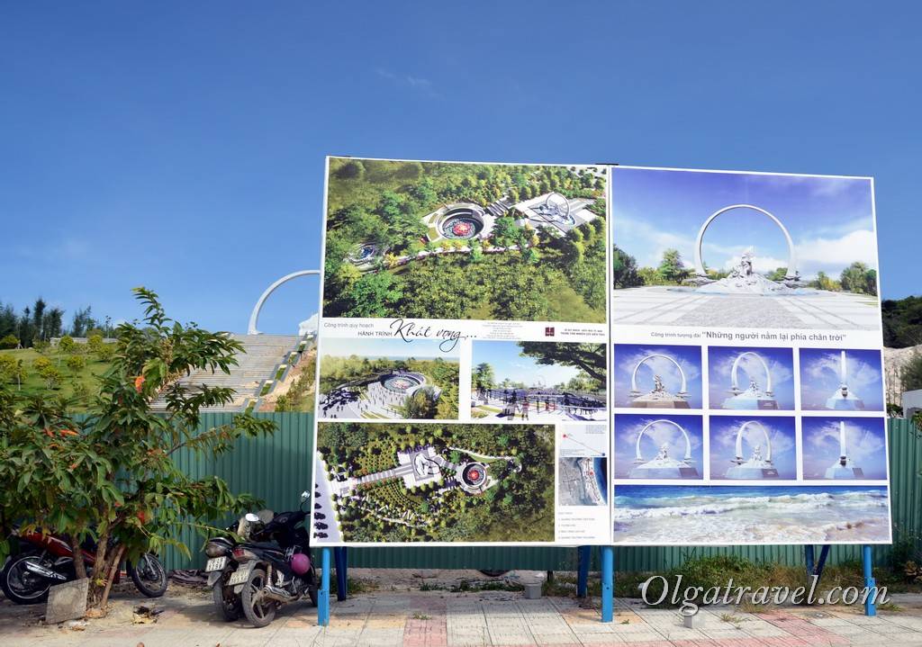 Виды по дороге из Нячанга на пляж Почти крымские пейзажи Нячанг и острова вокруг Проезжаем шикарный отель Mia Resort Nha Trang в бухте Дорога вдоль пляжа Бай Зай Дорога на Бай Зай Ответвления от основной дороги к пляжу Строят (или реконструируют) монумент. Рядом огромная парковка Скоро откроют монумент и небольшой парк рядом с пляжем Бай Дай