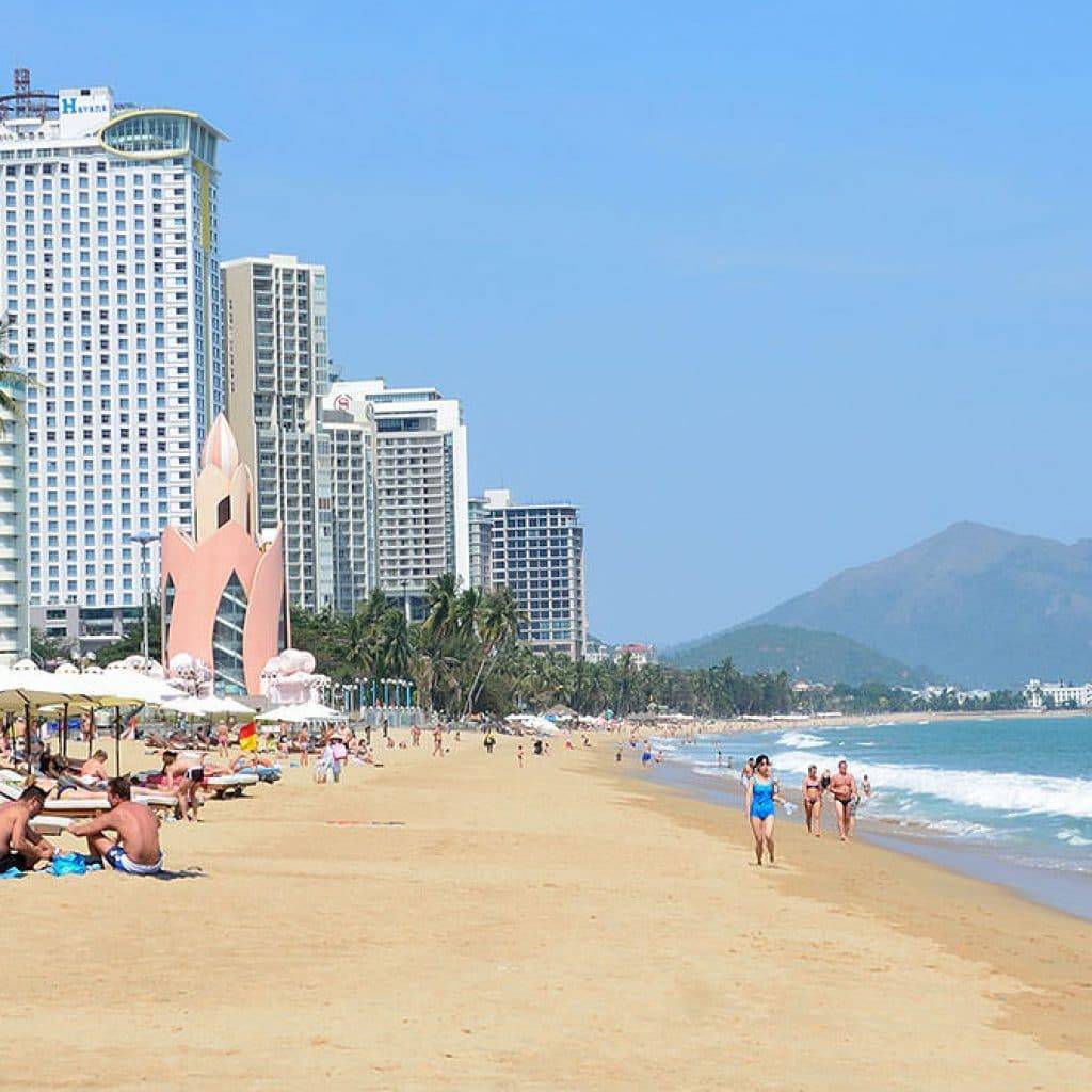 Этот пляж является одним из самых популярных мест города. Встретить тут можно и туристов и местных жителей. Вьетнамцы очень любят собираться здесь по вечерам и устраивать пикники. Протяженность городского пляжа Нячанг – около 7 километров, вдоль которых тянется набережная с пальмами, скамеечками, уличными тренажерами и фигурами из деревьев.