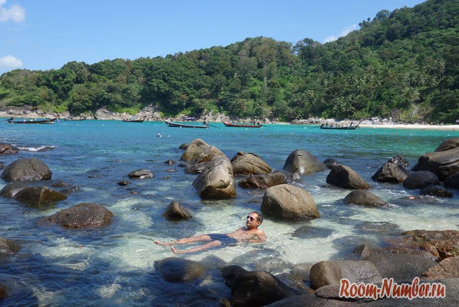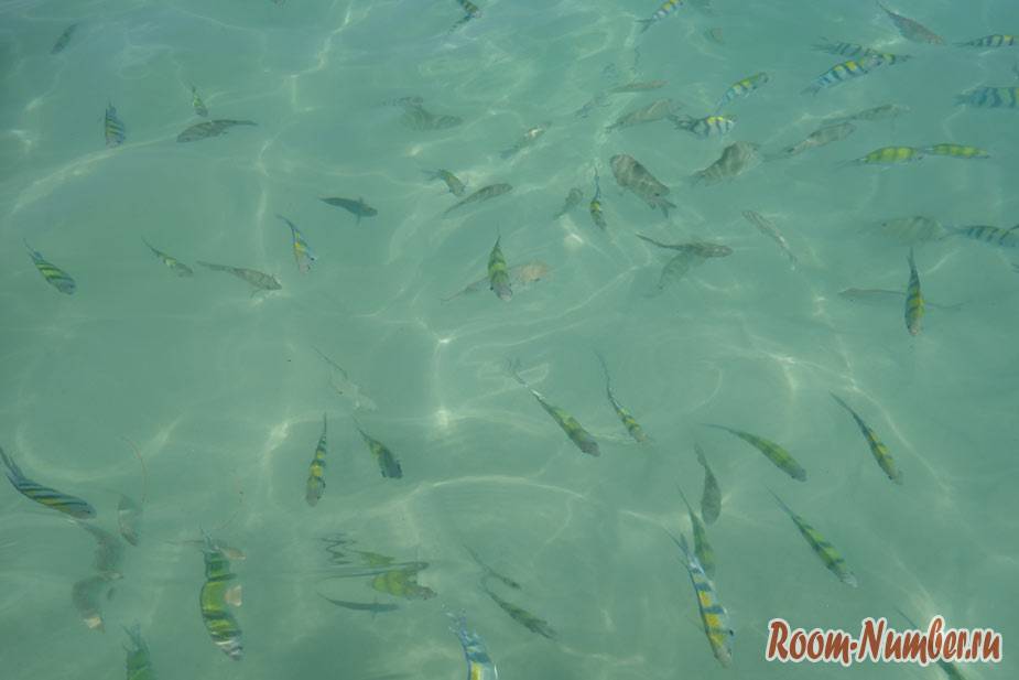 В море ничего не плавает, кроме разных рыбок. Рыбки настолько привыкли к людям, что подплывают очень близко, ждут еду. Рыбок в Таиланде кормить запрещено! Не нарушайте правила, а просто любуйтесь подводным миром. Мы пожалели, что не взяли маску и подводную камеру. Но даже без маски отлично видно всех рыбок. Посмотрите это небольшое видео. Уверяем вас, такого на Пхукете больше нигде нет!