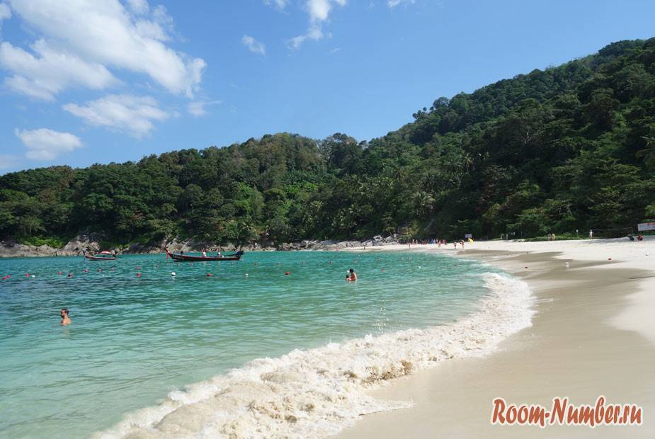 Он красивый, с мелким белым песком, что естественным образом очень нравится людям, но тишины и уединения вы тут не найдете. Если вы хотите побыть здесь с минимальным количеством людей, то приезжать нужно рано утром, чтобы уже часам к 10-11 отчаливать, потому что в это время начинают подплывать лодки с людьми и становится очень людно.