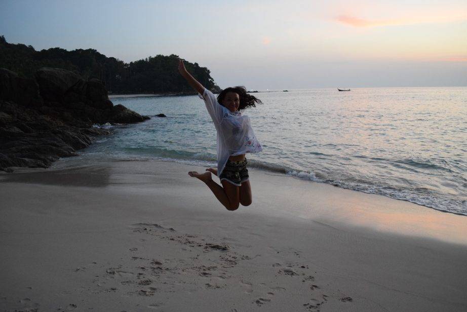 Так как мы оба раза приходили на пляж Фридом самостоятельно, то не зависели от времени отплытия лодки. Поэтому пробыли на нём до заката. К концу дня на пляже вообще не осталось народа. Только вдалеке на камнях сидел рыбак таец. Это так необычно остаться на многолюдном Пхукете единственными людьми на пляже, да еще на самом красивом пляже на острове. Как будто ты выкупил это место для романтического вечера вдвоем …