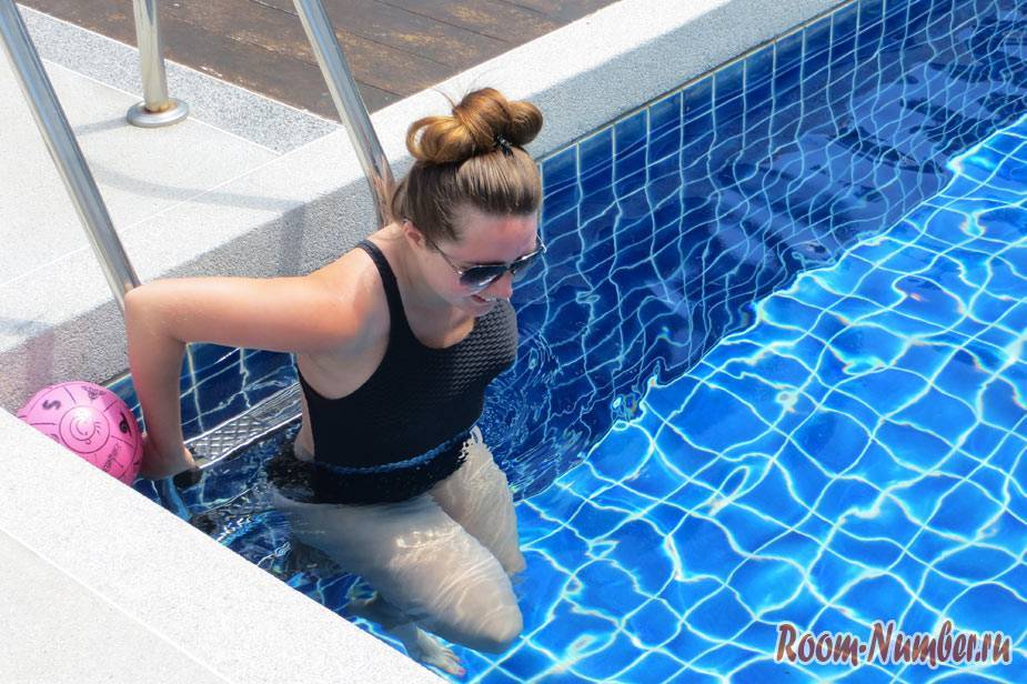 Он небольшой, но нам в нем так весело. Каждый день играем в мяч и устраиваем посиделки в джакузи.