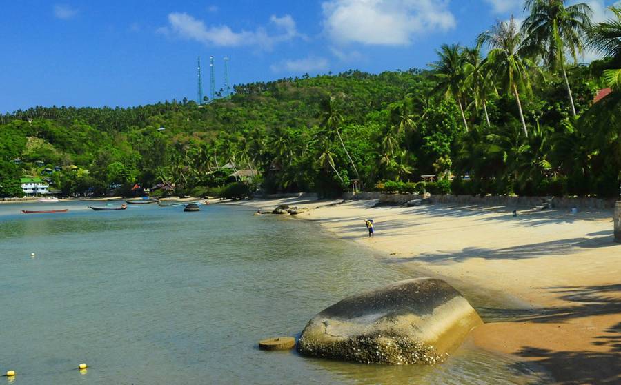Небольшой пляж километровой длины, который расположен у подножия горы Тао. Очень широкий и просторный. Местами его ширина достигает 100 и более метров, но кое-где море подступает вплотную к тропической растительности за пляжем. Покрытие состоит из крупного ракушечного песка.