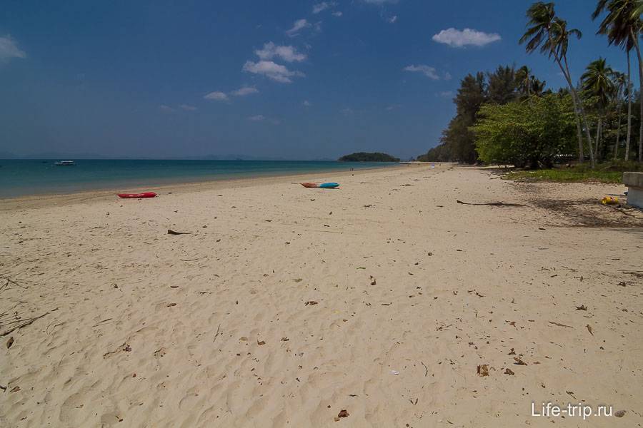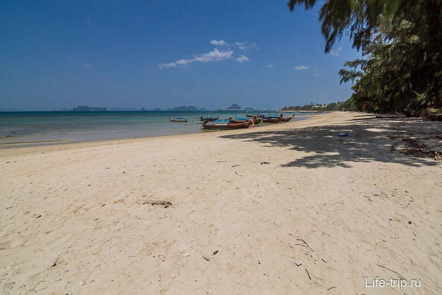 - Сам пляж Клонг Муанг довольно большой и длинный — целых 4 км белого песочка, как на роскошных Мальдивах, где я была не раз, а потому знаю, о чем говорю (читайте мою статью о пляжах Мальдив здесь).