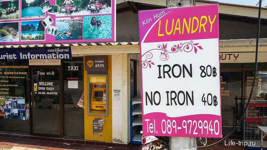 Аренда байков по 300 бат с залогом паспорта Стиральных машин не нашел, а прачечная вот столько стоит