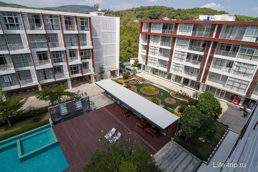 Из услуг вы получите большой бассейн (реально большой), а также фитнес-зал с некоторым набором тренажеров. Территория небольшая, и на ней больше ничего нет, однако не тесно. У каждого блока (их 3 штуки) есть небольшая парковка. И самое главное до пляжа идти всего навсего 5 минут. Буквально надо спустится немного вниз и по переулочку налево будет пляж Клонг Муанг.