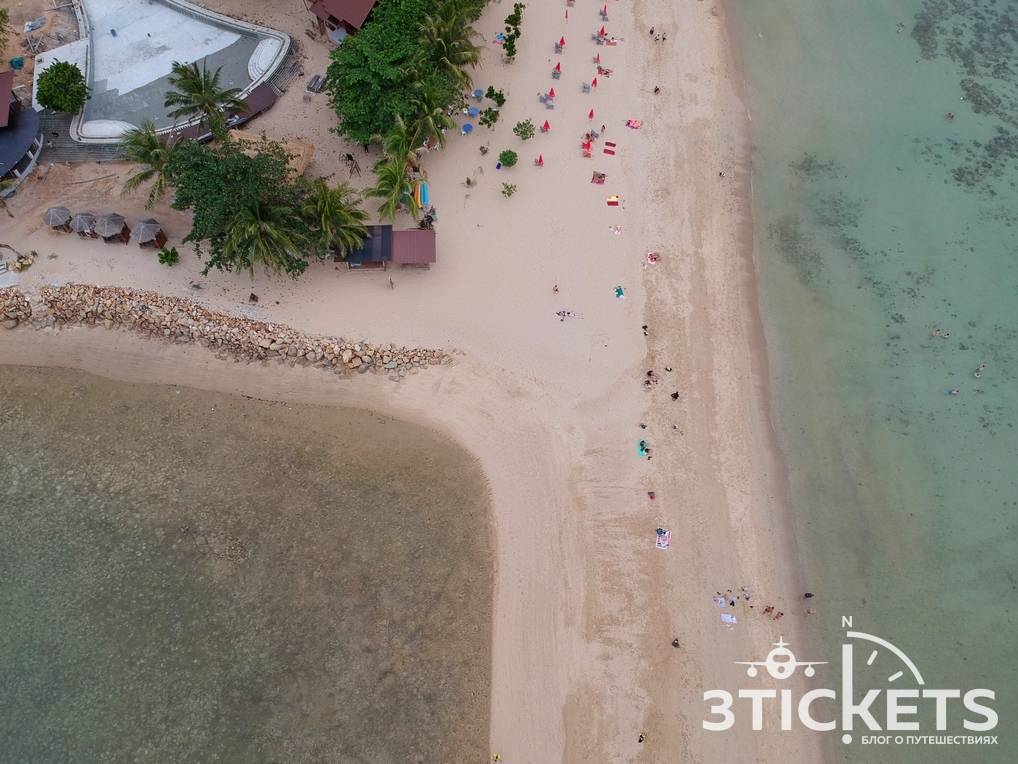 4. Пляж Малибу (Malibu beach) — крохотный отрезок суши в виде песчаной косы. Знаменит своим белоснежным песком и необычными деревьями. Находится на северной части острова, добираться лучше с западной стороны по кольцевой дороге на сонгтео или байке, координаты GPS — 9.789853, 100.000989.