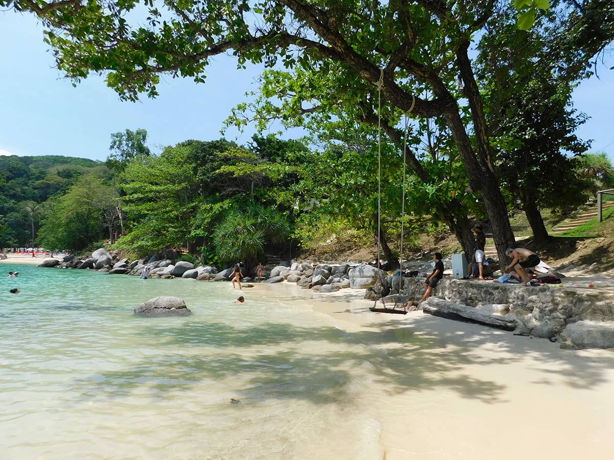 Еще одна особенность Райского пляжа на Пхукете: естественная тень, создаваемая многочисленной тропической растительностью — пальмами и лиственными деревьями, во второй половине дня разрастается почти на все песчаное побережье и спасает от лучей жаркого солнца.