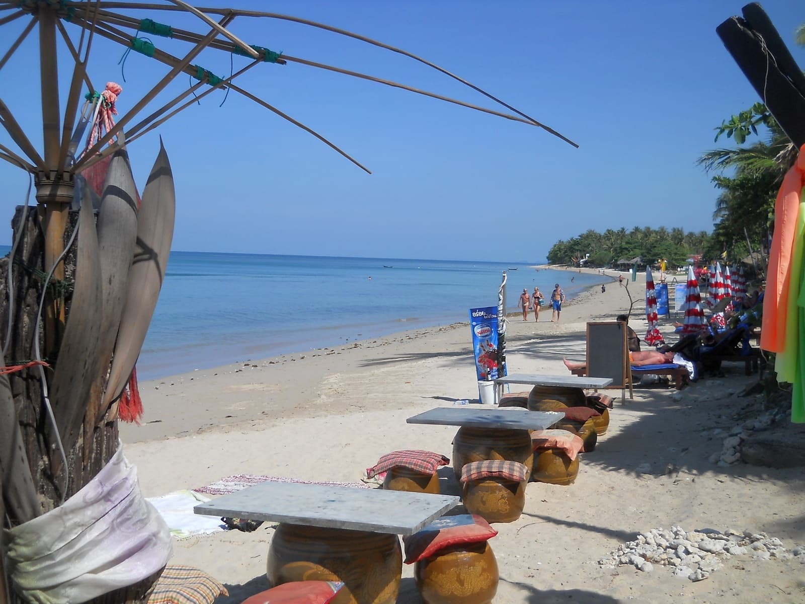 Днем весь пляж заставлен лежаками, мимо которых снуют продавцы всякой всячины. Стоимость лежака — 100 бат, при оплате он принадлежит только вам на весь день, при этом не обязательно всё время быть на пляже (работники пляжа за этим сами проследят). Большинство товаров и услуг, что продаются прямо на пляже не имеют фиксированной цены, так что торг уместен и обязателен, обязательно торгуйтесь.