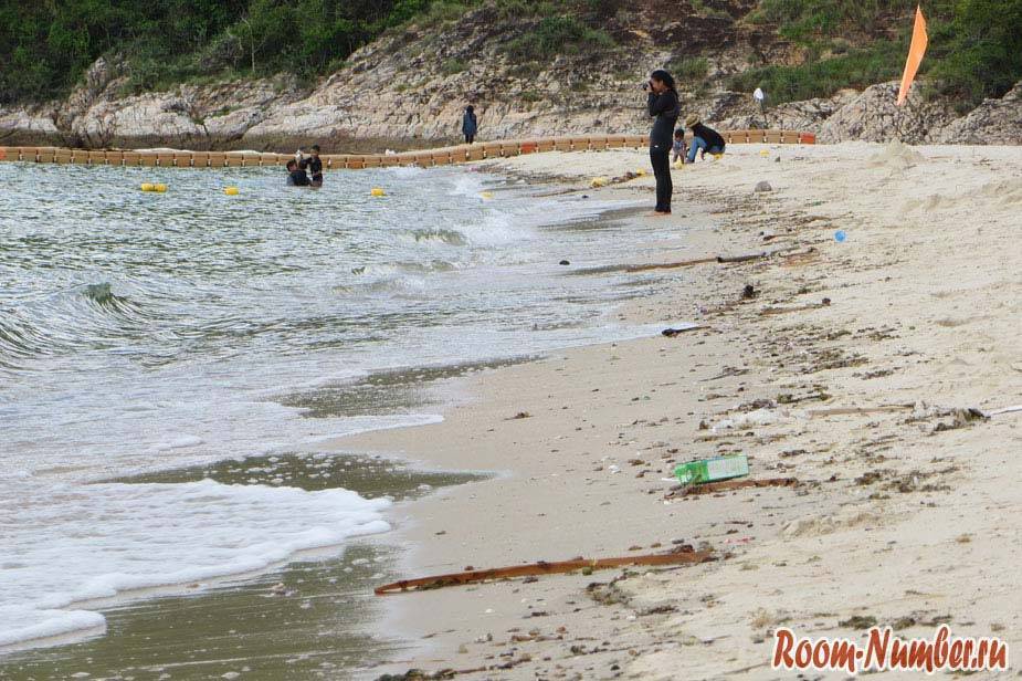 Я надеюсь, что в высокий сезон такого нет, но мы приезжали в октябре и видели много мусора, как на берегу, так и в воде. Не так много, как на пляжах в Паттайе, конечно же, но мусора хватает. Были замечены многочисленные пакеты, бутылки от энергетиков, одноразовые контейнеры для еды и даже упаковка от зубной пасты и резиновая перчатка.
