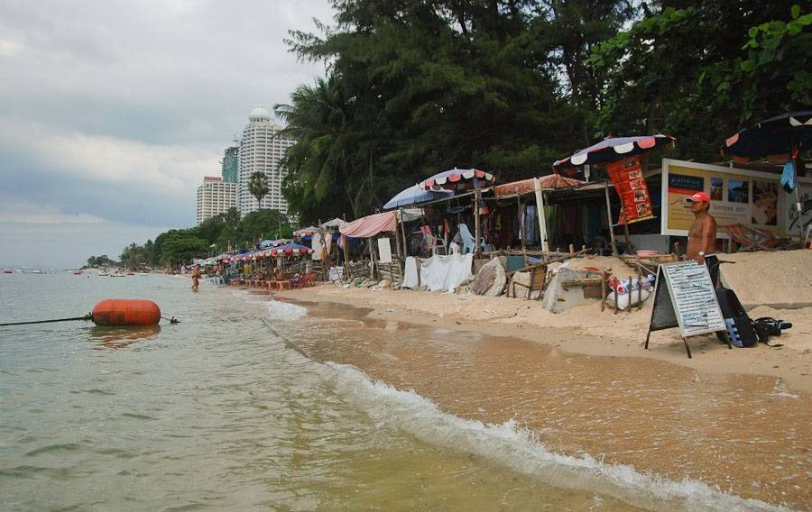Пляж Вонгамат в Паттайе. Правая часть более грязная и запущенная