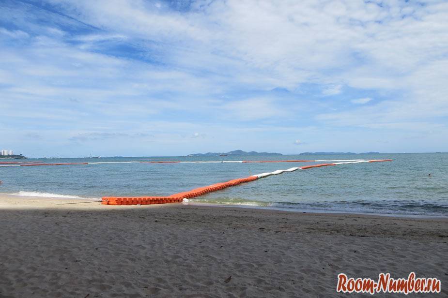 Ну а мы движемся дальше и заходим на пляж отеля Centara Grand Mirage Beach Resort Pattaya. Тут стоят аккуратные шезлонги, песочек чистый, огороженная зона для плавания. Левая часть пляжа наиболее живая и развитая. Даже в не сезон тут всегда есть туристы.